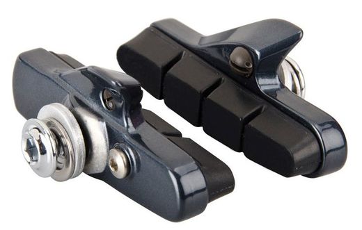 Kompletní brzdové cartridge a brzdovými špalky pro silniční kola s hliníkovými ráfky.
