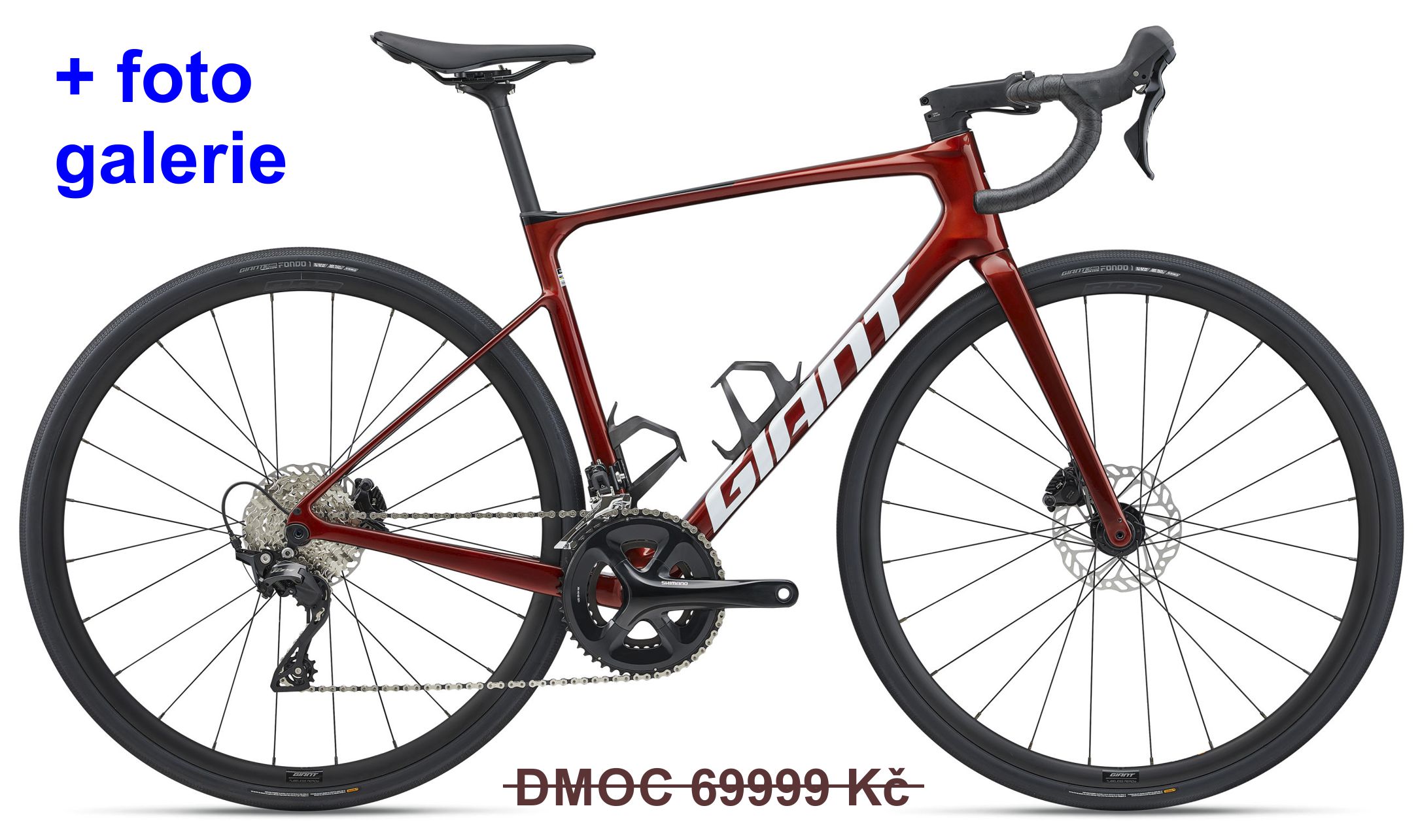 (DMOC je 69999 Kč). Zcela nová generace endurance kola Defy Advanced. Karbonový rám a vidlice Advanced Composite se skrytým vedením kabeláže a kotoučovými brzdami. 2x12 převodů, Shimano 105 R7100 s mechanickým řazením, kliky S. FCRS520. Kola Giant PR-2 Disc Factory Tubeless.