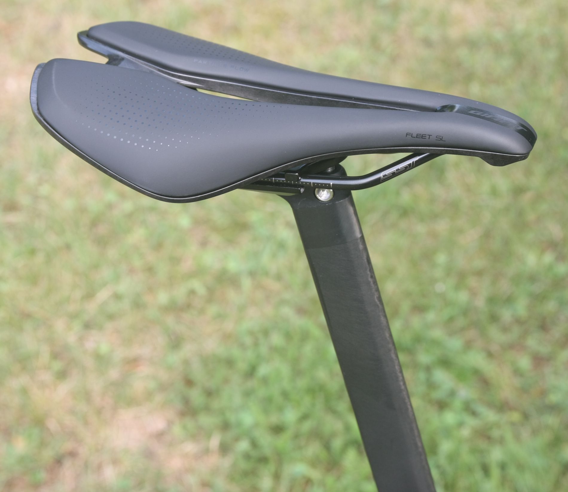 sedlo Giant Fleet SL, velký otvor ve střední části, zkrácená "špička" sedla,