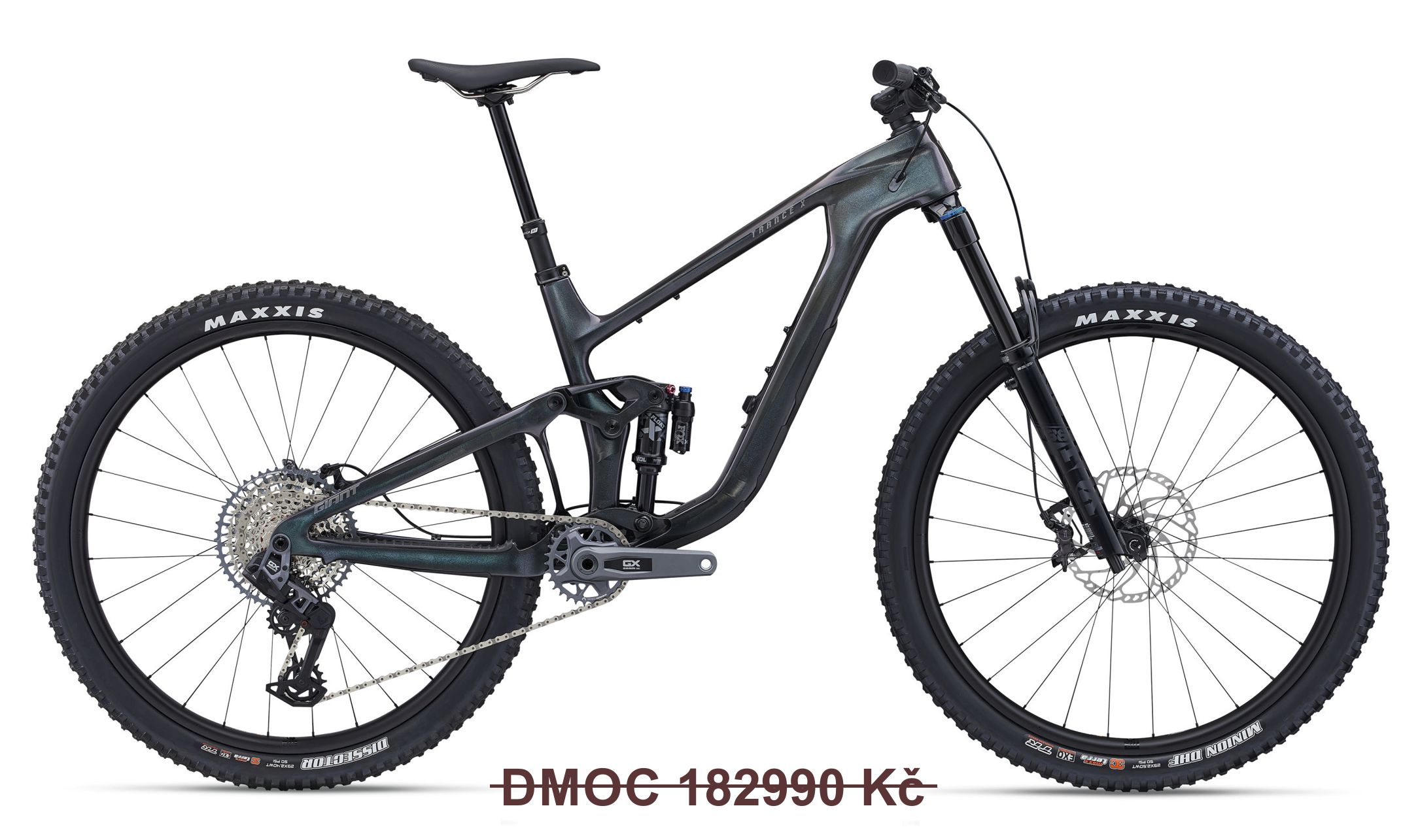 (DMOC byla 182999 Kč). Špičkové celoodpružené trailové kolo. Rám a zadní stavba Advanced Composite, odpružení Maestro 3 FlipChip, zdvihy 150/140 mm, tlumení FOX Performance Elite. Řazení Sram GX Eagle AXS Transmission, 4-pístkové brzdy S. XT. Factory Tubeless karbonová kola TRX Wave Guard.
