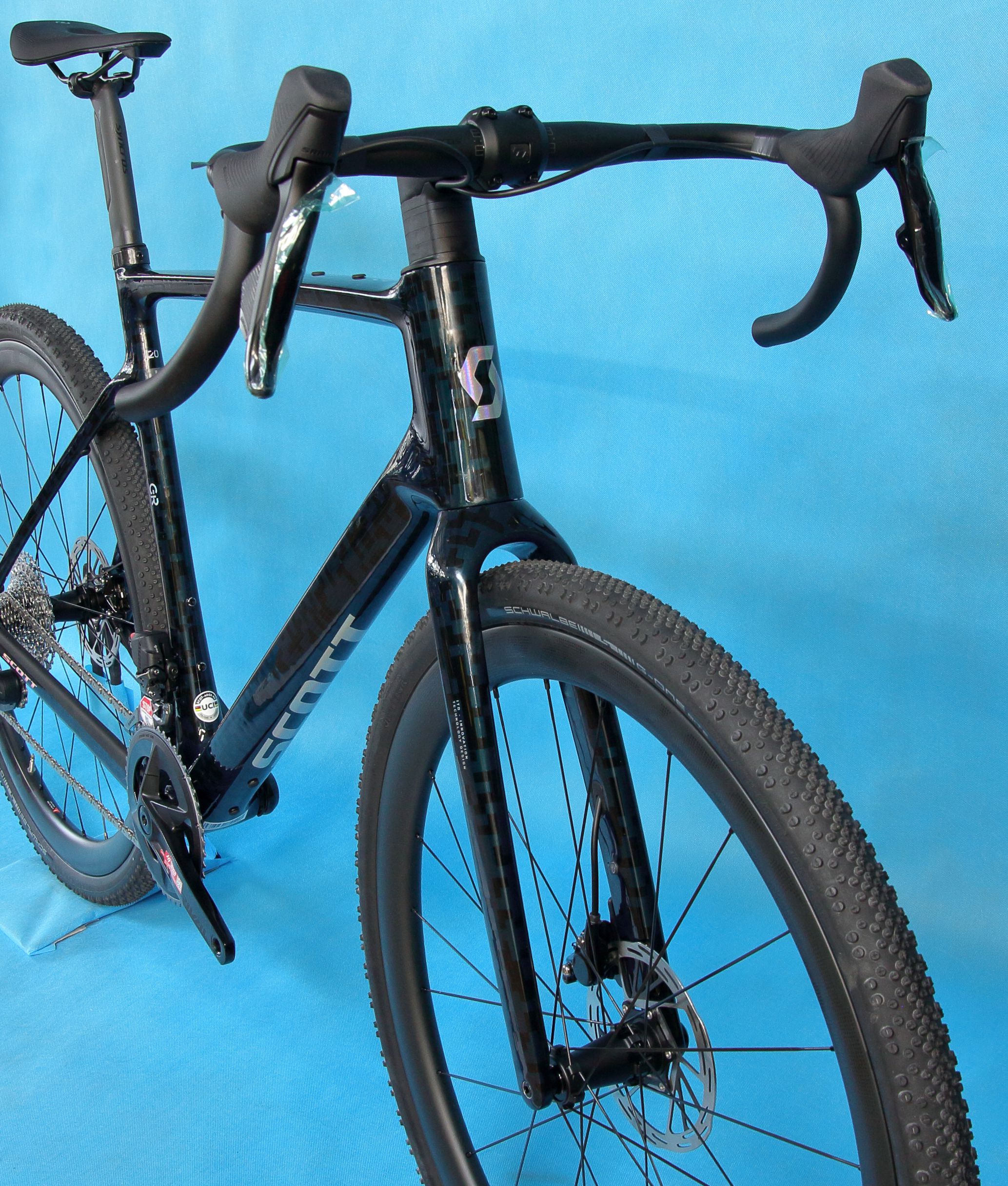 atraktivní karbonový gravel s elektronickým řazení a karbonovými koly