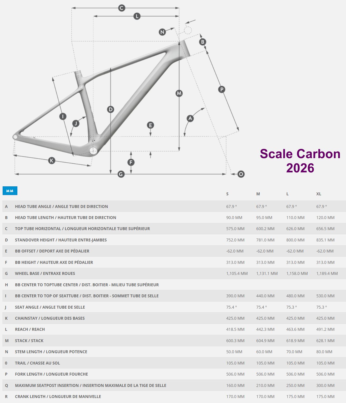 Rámy ve velikosti XXL jsou dostupné pouze jako ALU rámy (modely Scale 925 až Scale 940).